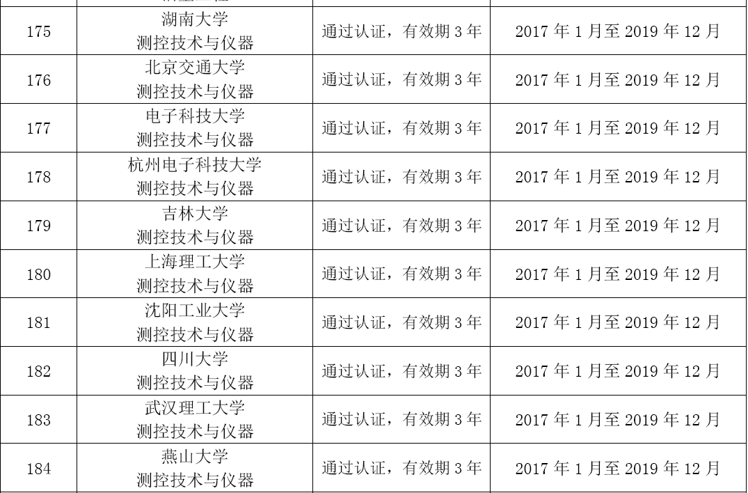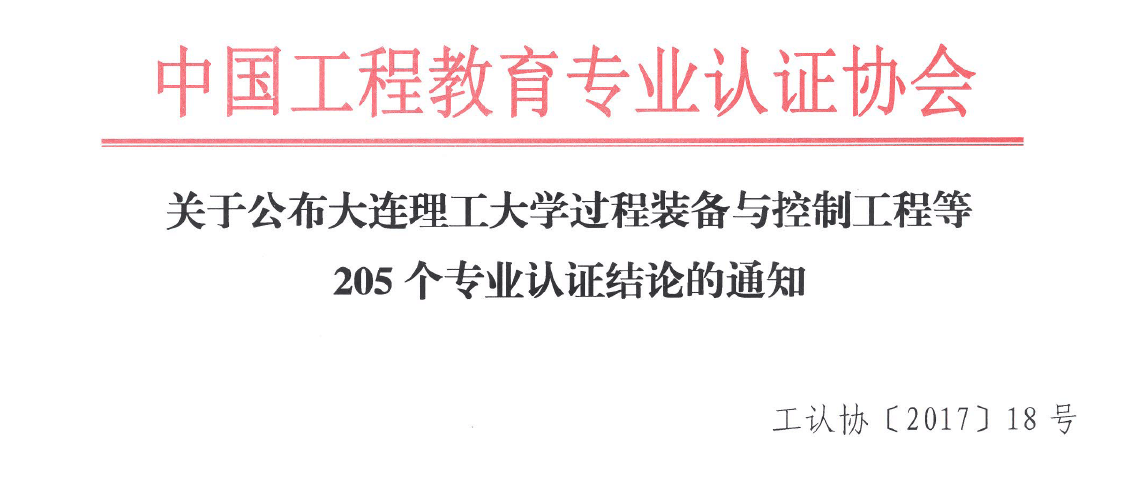 根据《关于公布大连理工大学过程装备与控制工程等205个专业认证结论的通知》【工认协[2017]18号】文件,中国工程教育专业认证协会组织对249个专业开展了工程教育专业认证工作,其中沈阳工业大学测控技术与仪器等205个专业经过学校自评、专家组现场考查、分委员会(试点工作组)审议、认证结论审议委员会审议等程序,通过了工程教育专业认证。