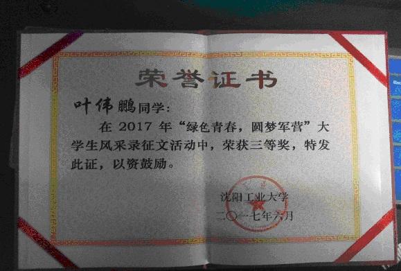 叶伟鹏、陈华翰在我校国防教育征文和演讲竞赛中取得优异成绩